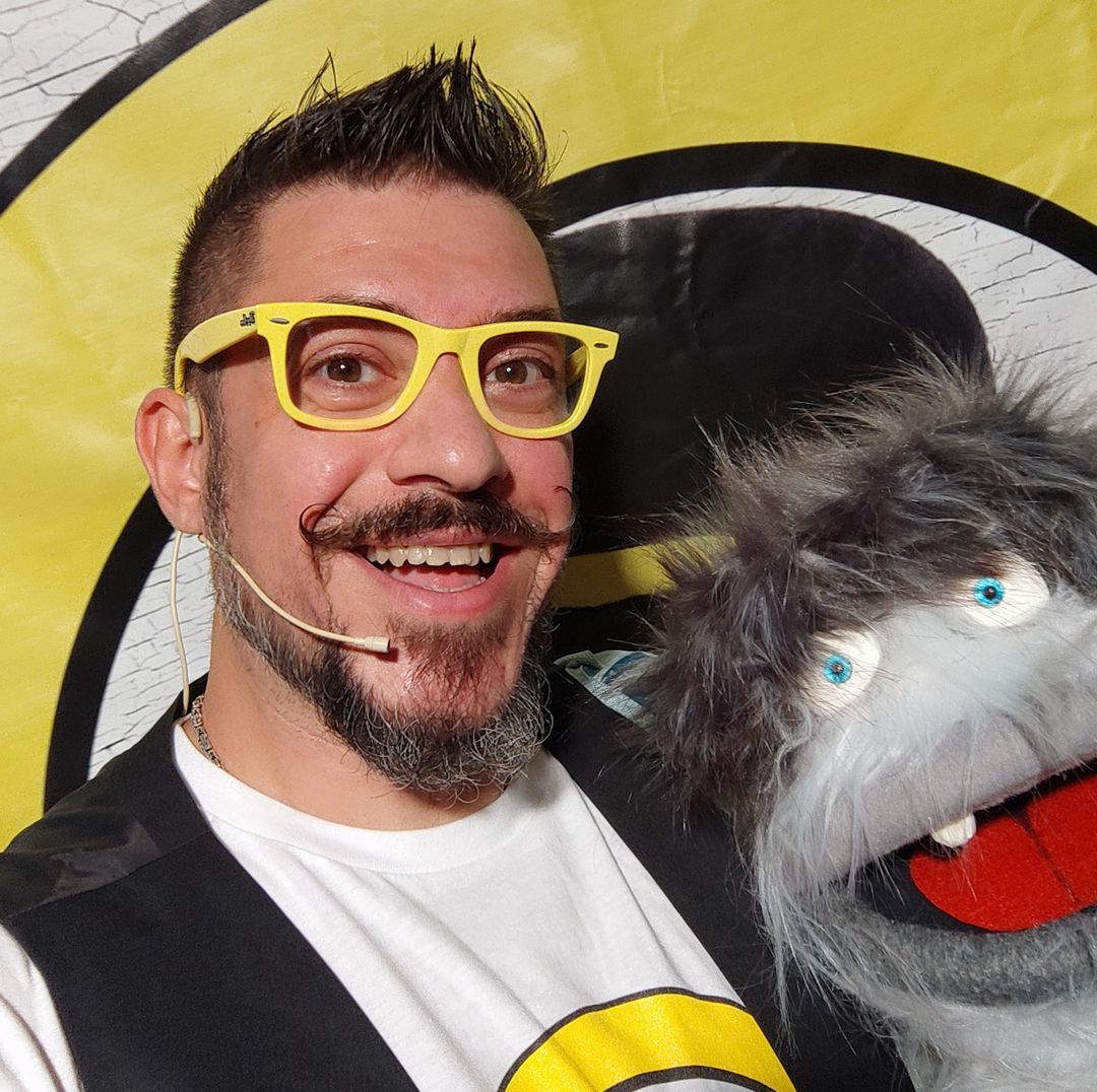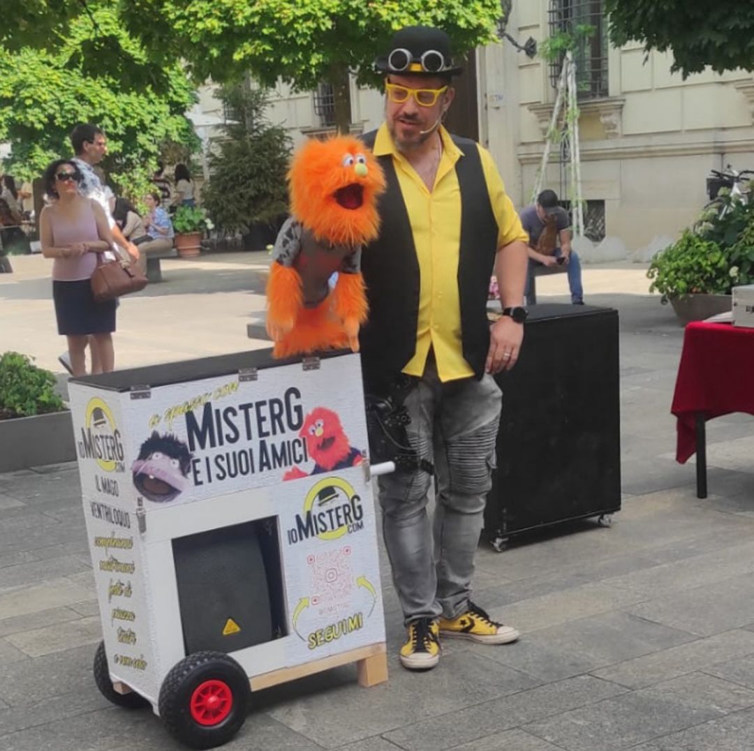 In quel periodo ho conosciuto Nicola Pesaresi (se non sapete chi sia, vi consiglio di farvi un giro su www.nicolapesaresi.com) e ho scoperto l’arte della ventriloquia. Ho iniziato a documentarmi tra video e libri fino a quando non sono riuscito ad avere l’opportunità di fare lezione con Nicola ed ecco qui il Mister G di oggi: un po’ mago, un po’ ventriloquo, un po’ poco normale.